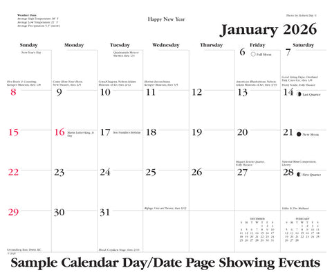 Our calendars contain beautiful photos of each city and are loaded with interesting local events happening throughout the year.